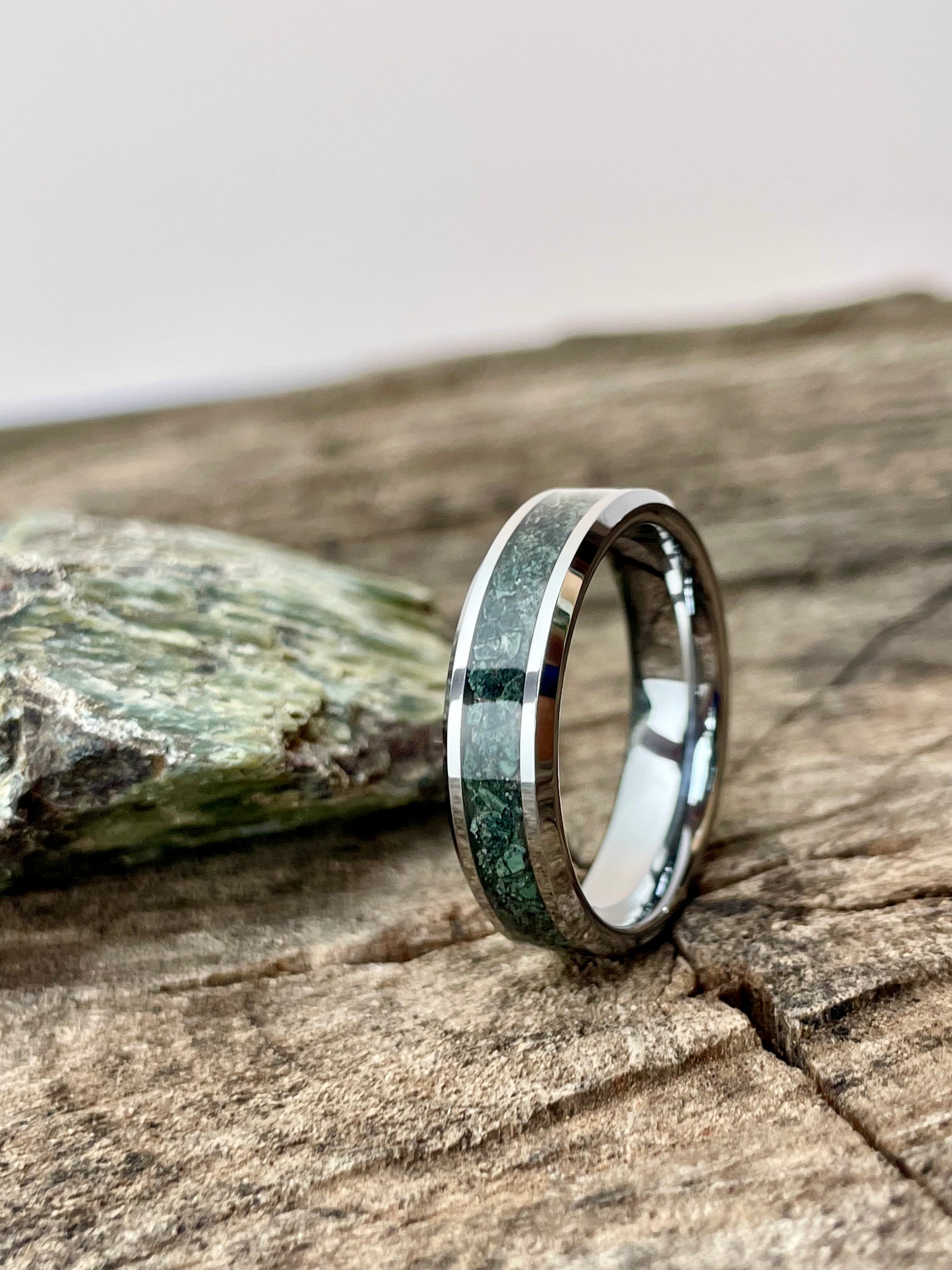 Tungsten Carbide Crushed Verdite Ring 6mm