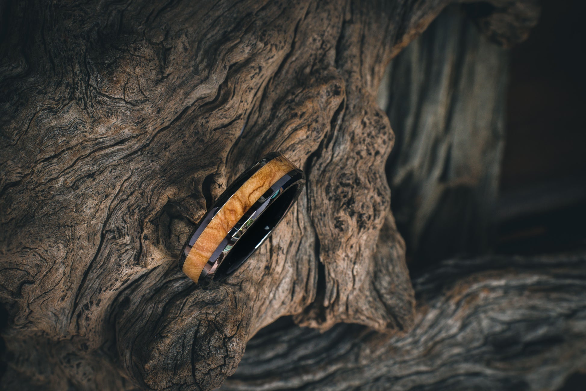 Ceramic Wild Olive Burl Inlay Ring 6mm