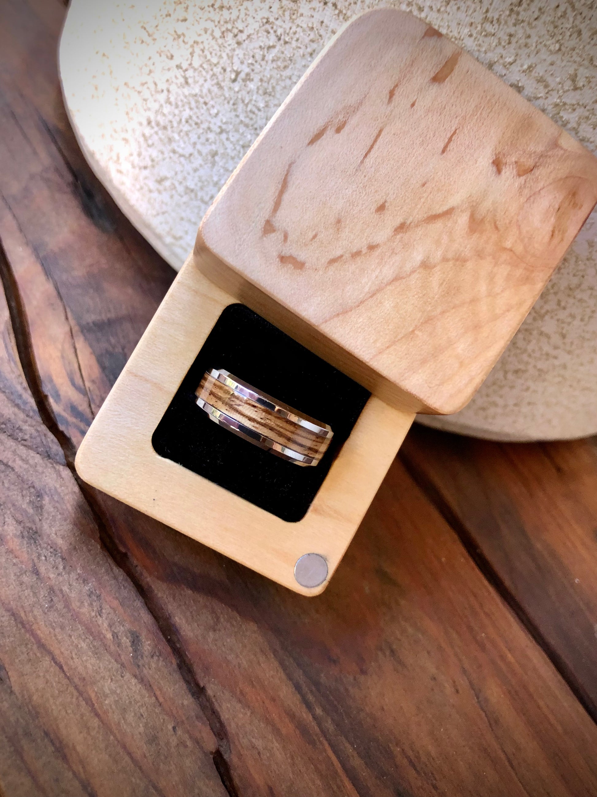 Every wood inlay has its own unique look. Natural grain and color variations mean your ring will be truly unique.